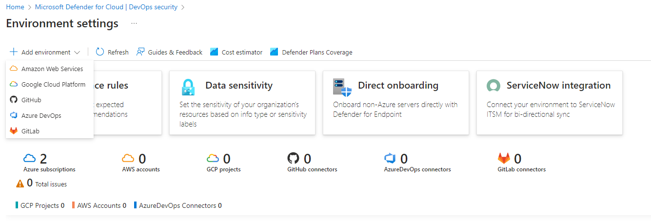 This feature of Defender for Cloud provides end-to-end security for code-based deployments from the well-known major source code repositories available in the market. These can be selected from the environment settings of the DevOps security blade in Defender for Cloud with GitLab being the most recent addition to the environment list.