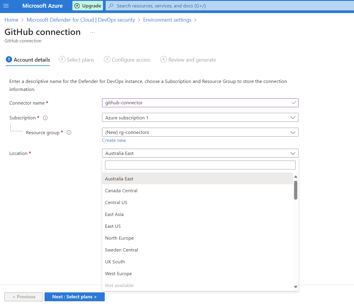 For both GitHub and Azure DevOps you can have multiple connectors for the same source code platform at different levels in the hierarchy. For example, in GitHub a connector per org or repo or for Azure DevOps per org, project or repo. For GitLab only one instance of a GitLab group can be onboarded to the Azure Tenant you are creating a connector in currently as this feature is in preview.