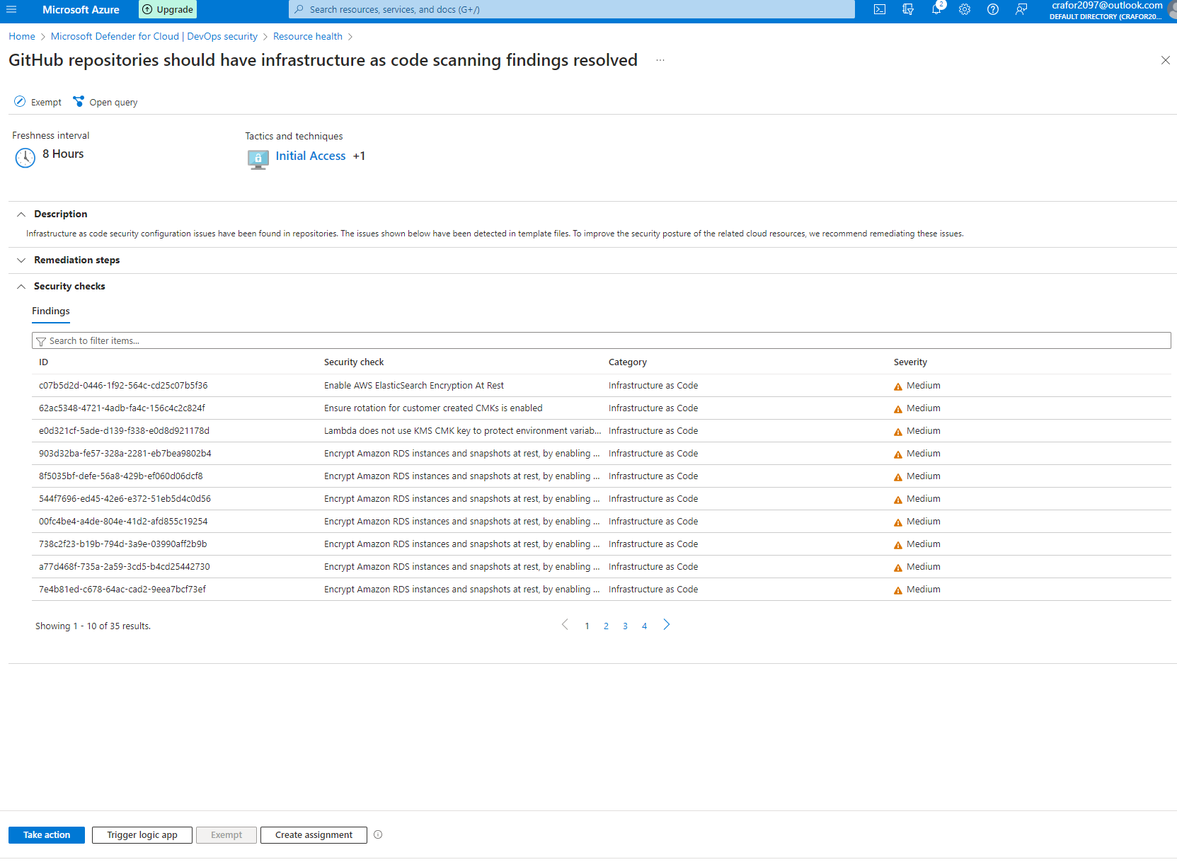 You can then click into the findings to get a complete list of recommendations for remediation.