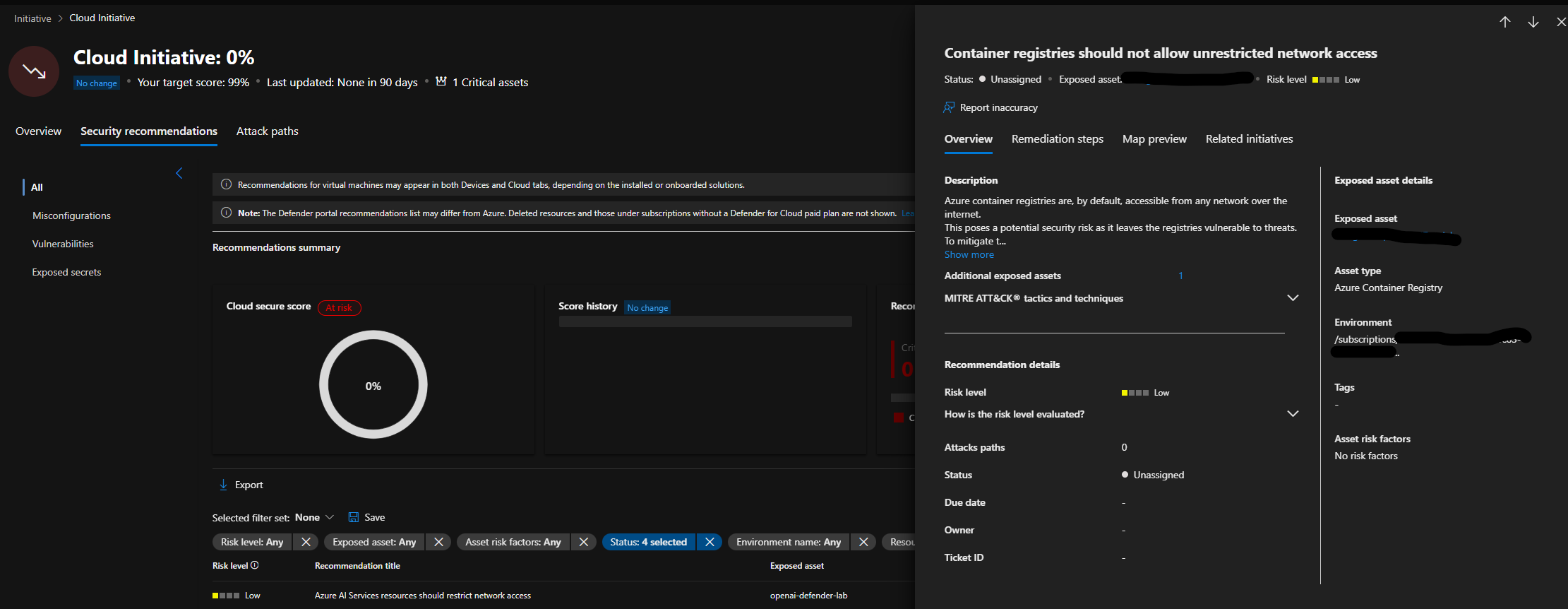 The recommendations you’re familiar with from Defender for Cloud are available in the unified portal. The filtering experience has been significantly improved. In the Azure portal, drilling down into issues often resets the filters, which has been a major pain point.